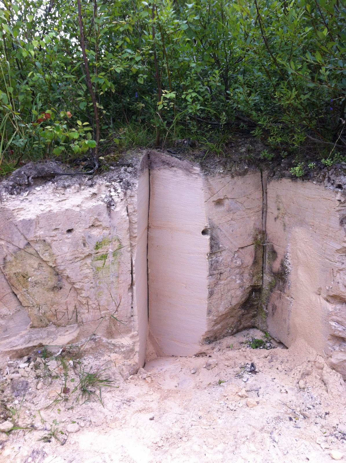 Figure 21: Ordovician limestone bedrock, responsible for the topography of the Izhora Plateau, as well as its rich soils.  This rock also hosts the cleanest groundwater of the region, including the springs that fed Peter the Great's summer palace. This picture is more for looks than anything, as it strongly contrasts the sort of outcrops I am used to seeing back home.
